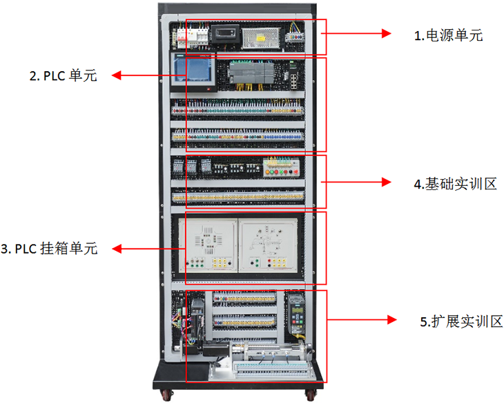 (3)配置多功能端子排,將主機I/O信號集成轉接至多功能端子排上,設有快速插接端口,便于學(xué)生實(shí)訓接線(xiàn),也可使用壓線(xiàn)端子接口,用于訓練實(shí)操布線(xiàn)工藝。