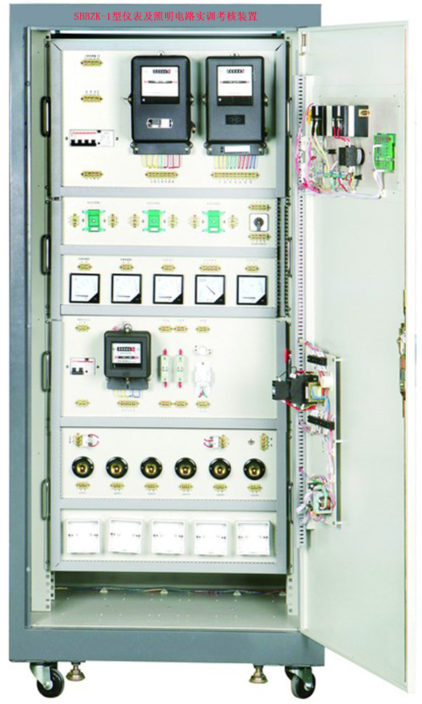 儀表及照明電路實(shí)訓考核裝置是按照勞動(dòng)和社會(huì )保障部頒發(fā)的"工人等級標準"和"職業(yè)技能鑒定"規范要求而設計的,它集培訓、理論、實(shí)際操作和考核鑒定為一體的多功能設備。該裝置采用實(shí)際應用的配電柜為主體,合理利用柜體的雙面空間,進(jìn)行合理布局,配置可靠的元器件。它既可用于對電工儀表和照明電路的操作實(shí)訓。也可作為初、中、高級電工技能考核設備。