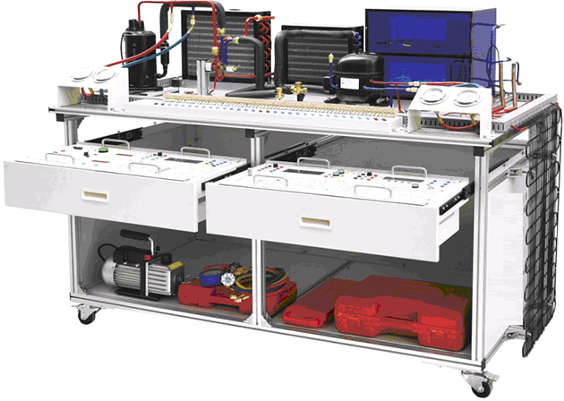 1.該裝置集制冷空調系統安裝、冰箱系統安裝、制冷系統電接線(xiàn)、壓力檢漏、抽真空、 充注制冷劑與運行調試于一體,包含了制冷系統維修的全部步驟,能滿(mǎn)足實(shí)訓教學(xué)、實(shí)際工程訓練及職業(yè)技能競賽的需要。