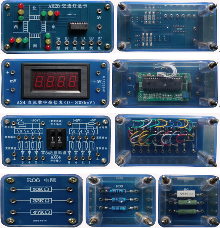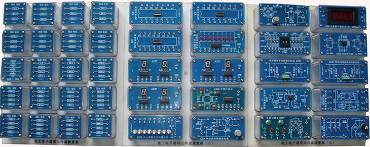 (透明電子元件模塊示例圖,共9塊板,140多只透明有機塑料封閉元件盒)