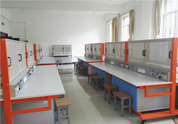 2、實(shí)訓桌桌面采用25mm麻灰色高密度層壓板封邊特制,有效提高絕緣等級;實(shí)驗桌底部裝有至少4個(gè)導向輪,方便實(shí)訓臺架移動(dòng);