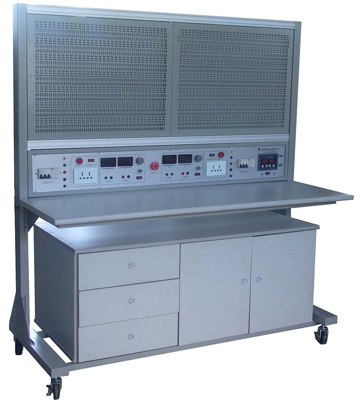 1、以30mm×30mm成型方鋼作為設備主要框架材料;實(shí)訓屏、地盤(pán)采用焊接連接、關(guān)鍵部位采用三角筋用內六角螺釘加固連接,表面經(jīng)高溫噴塑處理,美觀(guān)大方且有效起到防銹絕緣的作用;由兩條35mm×35mm鋁合金型材及滑槽組成網(wǎng)孔板固定機構;固定機構的下方每面是鐵制雙工位電源箱,每工位電源箱的布局依次為電源保護裝置、電源指示裝置、電源輸出;