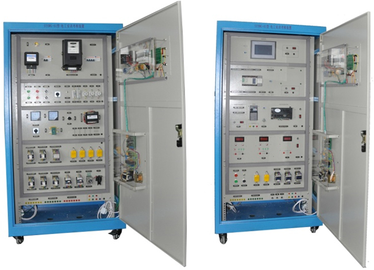 電工實(shí)訓考核裝置可完成“電工技術(shù)”、“工廠(chǎng)電氣控制”、“機床線(xiàn)路控制”、“可編程控制技術(shù)”等多門(mén)課程的實(shí)訓。裝置資源開(kāi)放,可充分培養學(xué)生的實(shí)際動(dòng)手能力,適合當今教育教學(xué)中的實(shí)訓訓練。本裝置采用用標準配電柜為主體柜、雙面結構,包含如下資源:電源控制、三相交流電源,直流電源,勵磁電源、電樞電源、測量?jì)x表、可編程控制器(三菱系列)、模擬量模塊、編碼器、彩色觸摸屏、變頻器(三菱系列)、控制軟件、交流接觸器、按鈕、指示燈、時(shí)間繼電器、行程開(kāi)關(guān)、中間繼電器、三相異步電機、直流電機等。適用于大學(xué)、專(zhuān)科院校及各類(lèi)職業(yè)教育培訓機構的實(shí)訓教學(xué)、考核鑒定。