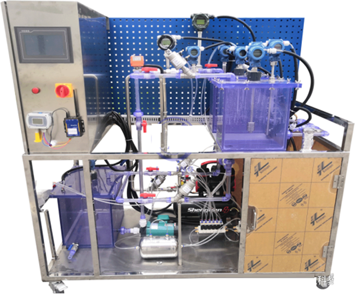 實(shí)訓臺以水、氣/汽、電能耗監測為背景,采用液位計、流量計、溫度變送器、壓力變送器、電磁閥、水泵、氣泵、電氣控制箱、水箱等裝置模擬工業(yè)場(chǎng)景下的水循環(huán)、氣循環(huán)、電能監測常見(jiàn)的過(guò)程控制系統。其中水箱作為液體盛放和氣體導入的氣液混合容器,模擬化工行業(yè)常見(jiàn)的化工產(chǎn)品制備工藝場(chǎng)景。通過(guò)現場(chǎng)監控裝置及傳輸模塊,將液位、流量、壓力、水溫、氣溫、電壓、電流、電量等過(guò)程控制參數進(jìn)行數據采集,傳輸到能源管理平臺,達到工業(yè)水、汽、氣、電等至少三種數據采集控制、數據傳輸、數據存儲、數據分析及可視化展示的目的。