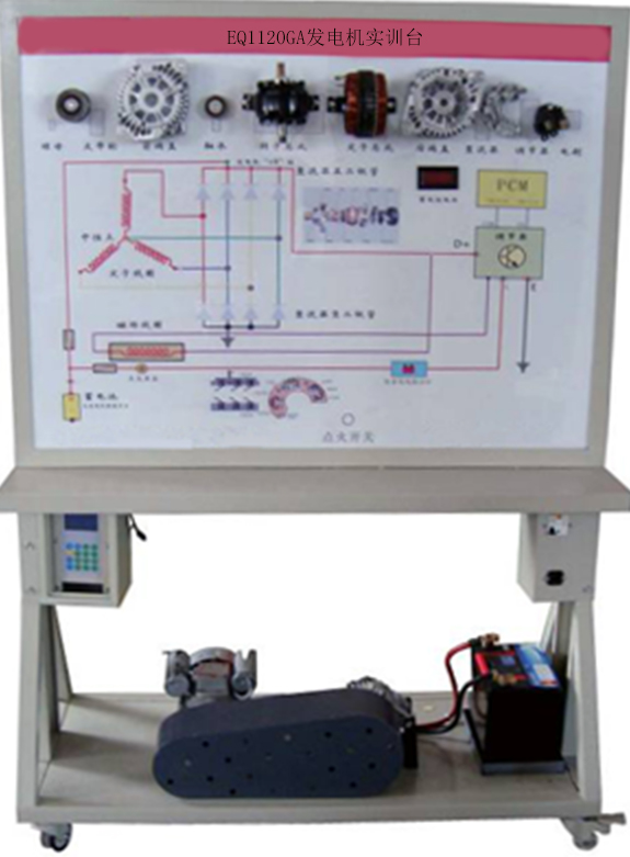 汽車(chē)發(fā)電機實(shí)訓設備采用全新EQ1120GA 汽車(chē)充電系統實(shí)物為基礎,充分展示汽車(chē)充電系統的組成結構和工作過(guò)程。