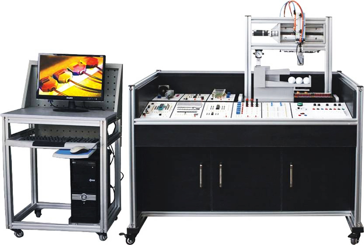 配置雙軸機器人作為裝配的執行機構,具有X軸、Y軸兩個(gè)方向的執行能力,可完成智能抓取物料放料等功能;配置有行程開(kāi)關(guān),光電傳感器,光纖傳感器等,可確保各執行器的準確定位;超出最大行程時(shí),具有硬件自動(dòng)保護功能,確保系統安全及人身安全;本裝置為通用的模塊化的多功能裝置,各功能端口完全開(kāi)放,可以能過(guò)不同的接線(xiàn)來(lái)完成各種不同的功能,為學(xué)生的創(chuàng )新設計提供了廣闊的發(fā)揮空間。