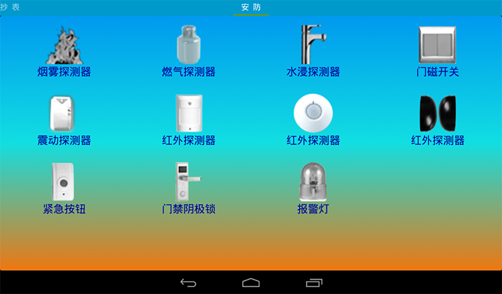 4、家居安防環(huán)境監測系統:通過(guò)紅外入侵、震動(dòng)、燃氣、煙霧、水浸、緊急按鈕、紅外對射入侵檢測、門(mén)禁一體機、門(mén)鎖、門(mén)磁、報警燈等工業(yè)級傳感器,配合智能網(wǎng)關(guān)家居安防系統軟件,實(shí)現智能家居安防系統,使學(xué)生們可以真正的了解與學(xué)習物聯(lián)網(wǎng)無(wú)線(xiàn)傳感網(wǎng)技術(shù)在智能家居上的應用。