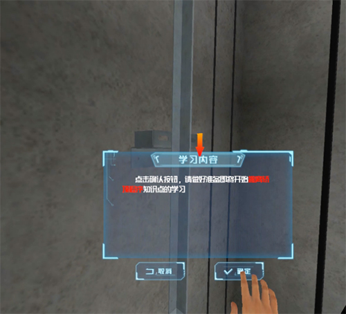 完成一個(gè)單元的學(xué)習后,可以在場(chǎng)景中找到對應的出口,返回菜單進(jìn)行下一階段的學(xué)習。也可以在左手輪盤(pán)中選擇"選項"后直接退出系統。