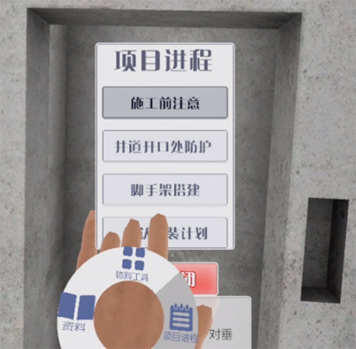 系統可以根據頭顯的定位和角度變換來(lái)進(jìn)行全場(chǎng)景的展示,在場(chǎng)景中可以體驗真實(shí)的施工環(huán)境和相對應的施工過(guò)程,增加沉浸感和體驗度。