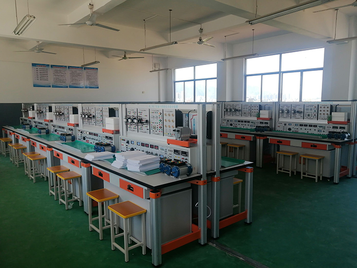 電工電子技能綜合實(shí)訓裝置由實(shí)驗主機箱、儀器架、實(shí)訓桌、移動(dòng)矮柜、電工電子實(shí)訓套件、學(xué)生凳等組成。實(shí)驗裝置支架與實(shí)驗桌可組合、可拆裝。支架與桌腳一體,鋁合金結構。