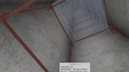 系統可以根據頭顯的定位和角度變換來(lái)進(jìn)行全場(chǎng)景的展示,在場(chǎng)景中可以體驗真實(shí)的施工環(huán)境和相對應的施工過(guò)程,增加沉浸感和體驗度。