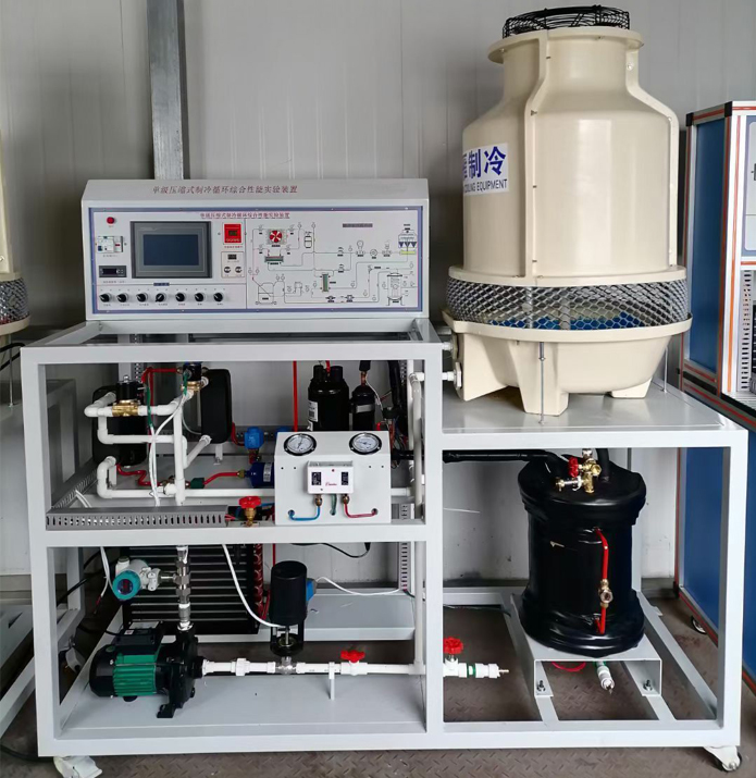 單級壓縮式制冷循環(huán)綜合性能實(shí)驗裝置采用蒸汽壓縮式制冷循環(huán)系統,配備全封閉式制冷壓縮機、冷凝器、蒸發(fā)器等制冷系統真實(shí)部件,并設有溫度計、流量計、壓力表等測量?jì)x表。不但能開(kāi)設制冷壓縮機性能參數的測定實(shí)訓,還能進(jìn)行制冷循環(huán)基本原理的演示實(shí)訓。適用于職業(yè)院校制冷專(zhuān)業(yè)相關(guān)課程的教學(xué)實(shí)訓。實(shí)訓裝置也適合技工學(xué)校、職業(yè)培訓學(xué)校、職教中心、鑒定站/所制冷類(lèi)專(zhuān)業(yè)《制冷設備維修工(初級、中級、高級)