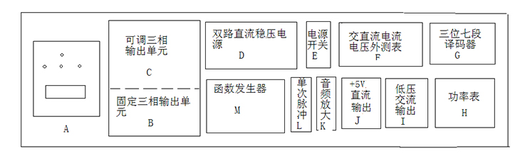 1.A單元為三相四線(xiàn)電源輸入指示,安全保護,供電控制部分。輸入指示指示燈亮,說(shuō)明電源已與本實(shí)驗臺接通,電源總開(kāi)關(guān)往上拔,三相四線(xiàn)電源既向輸出口及實(shí)驗臺內部提供電源,該單元保險管熔斷電流為2A。