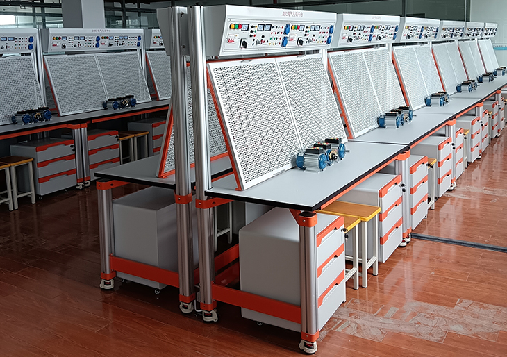 電氣實(shí)訓平臺、電氣基本技能實(shí)訓室設備為機電技術(shù)應用專(zhuān)業(yè)實(shí)訓室。電氣基本技能實(shí)訓室設備的功能是《電工》職業(yè)技能“照明電路安裝調試和器件的拆裝”模塊的培訓和鑒定,側重于室內照明電路安裝調試和變壓器、電動(dòng)機、接觸器等器件的拆裝測試技能的訓練。配備電氣技能實(shí)訓考核裝置,電氣實(shí)訓平臺各種實(shí)訓組合板和實(shí)訓器件滿(mǎn)足學(xué)生實(shí)訓,接線(xiàn)直觀(guān),拆裝測試一體化,極大地幫助學(xué)生提高了動(dòng)手操作能力和感性認知水平。