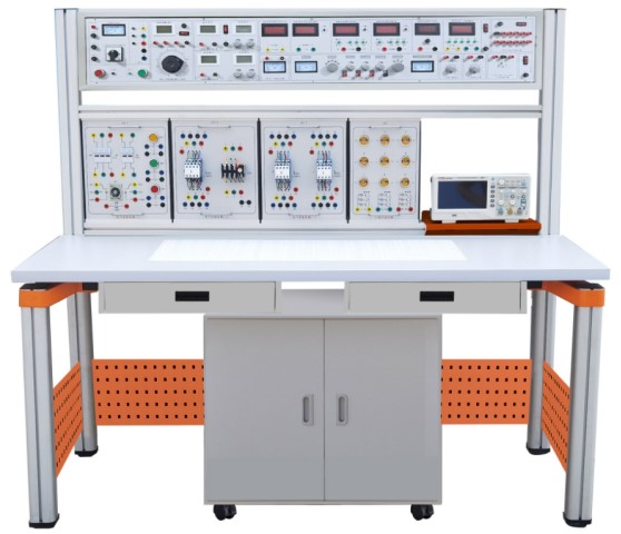 裝置由主機箱、實(shí)驗桌、實(shí)訓屏、實(shí)訓掛箱、移動(dòng)矮柜、示波器架、學(xué)生凳等組成。實(shí)訓裝置支架與實(shí)訓桌可組合、可拆裝。支架與桌腳一體,鋁合金結構,實(shí)訓掛箱、各實(shí)驗模塊可根據實(shí)驗需求自由組合放置。