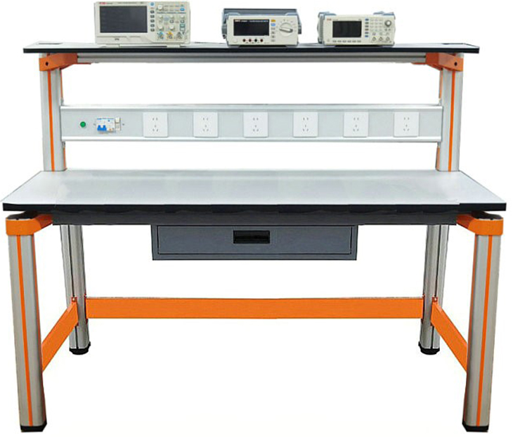 實(shí)驗桌后面二支截面尺寸70mm×70mm桌腳向上延伸,與一次成型鋁壓鑄框架連接構件構成(非焊接工藝)牢固的支架,與儀器架、電源控制箱組成一個(gè)完整的實(shí)訓屏。
