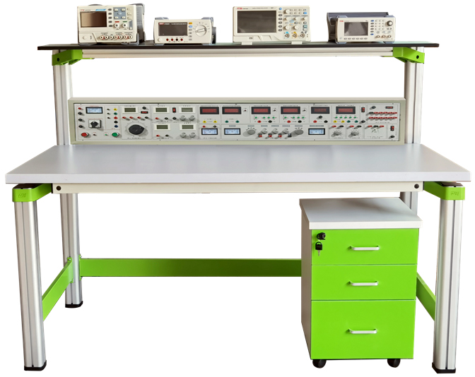 (二)儀器架:儀器架置于實(shí)訓臺頂部,由截面尺寸:70×70mm,由高性能表面氧化的鋁型材、雙面噴塑鋼板及一次成型鋁壓鑄框架連接構件組成(非焊接工藝),外形美觀(guān),結構牢固耐用。放置示波器等測試儀器,實(shí)驗過(guò)程中使用得心應手。
