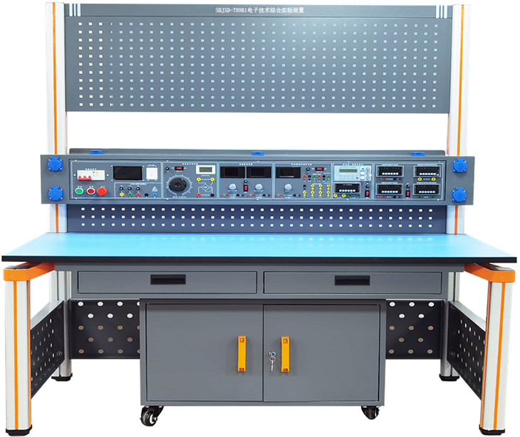 電子技術(shù)綜合實(shí)驗臺主要由實(shí)驗主機箱、儀器架、電源控制箱、獨立實(shí)驗電路模塊、實(shí)驗桌(含磁吸式實(shí)驗基座)、儲存柜、學(xué)生凳等組成。