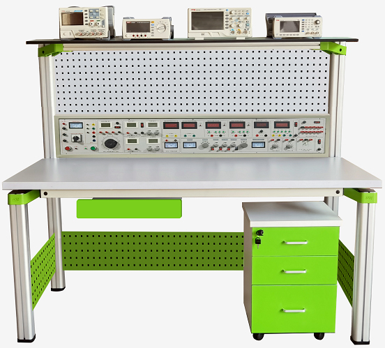 電子學(xué)實(shí)訓臺主要由實(shí)訓主機箱、儀器架、電源控制箱、獨立實(shí)訓電路模塊、實(shí)訓桌(含磁吸式實(shí)訓基座)、儲存柜、學(xué)生凳等組成。