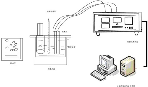 熱電偶實(shí)驗裝置主要由恒溫水浴、電位差計、熱電偶、熱電阻、冰點(diǎn)儀、數據采集裝置、低電勢轉換開(kāi)關(guān)和標準玻璃溫度計等組成。恒溫水浴上具有攪拌、加熱與溫度控制裝置,可根據要求將溫度穩定在設定值附近。采用標準玻璃溫度計測量的溫度作為標準溫度,用于校準熱電偶和熱電阻。