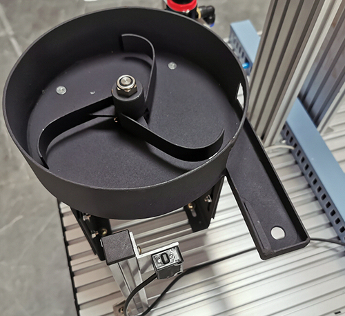 放料轉盤(pán):轉盤(pán)中共放三種物料,一種金屬物料、一種黑色塑料物料、一種白色塑料物料。