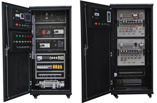 1.本裝置是由控制柜、受控對象等組成一個(gè)完整系統,具有占地面積小、操作方便、可移動(dòng)、內部安裝有照明設施、操作面板,各控制點(diǎn)和通訊接口均引出到專(zhuān)用的接線(xiàn)板上,使實(shí)訓更加便捷。