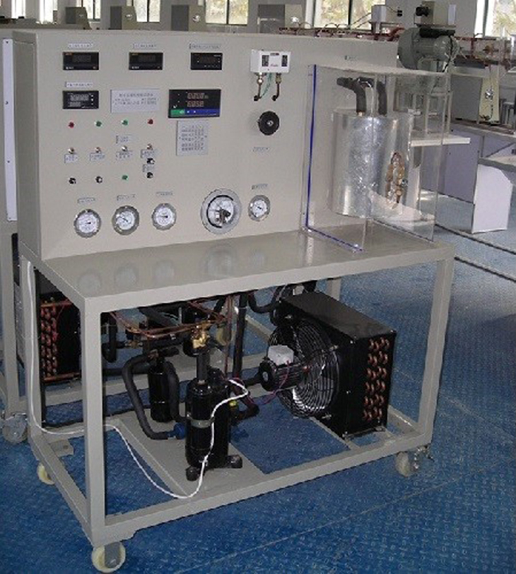 " 壓縮機性能試驗臺(電量熱計法)"采用蒸汽壓縮式制冷循環(huán)系統,配備制冷壓縮機、不銹鋼冷凝器、蒸發(fā)器等制冷系統真實(shí)部件,并設有彩色控制屏、制冷劑流量調節控制器,電子膨脹閥,渦輪流量計、壓力變送器、電壓、電流、功率、合相有功功率、各相無(wú)功功率、合相無(wú)功功率、各相視在功率、合相視在功率、采集器。不但能開(kāi)設制冷壓縮機性能參數的測定實(shí)訓,還能進(jìn)行制冷循環(huán)基本原理的演示實(shí)訓。適用于職業(yè)院校制冷專(zhuān)業(yè)相關(guān)課程的教學(xué)實(shí)訓。