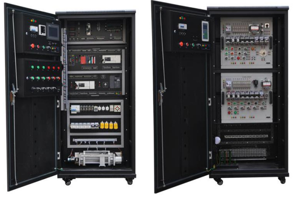 1.本裝置是由控制柜、受控對象等組成一個(gè)完整系統,具有占地面積小、操作方便、可移動(dòng)、內部安裝有照明設施、操作面板,各控制點(diǎn)和通訊接口均引出到專(zhuān)用的接線(xiàn)板上,使實(shí)訓更加便捷。
