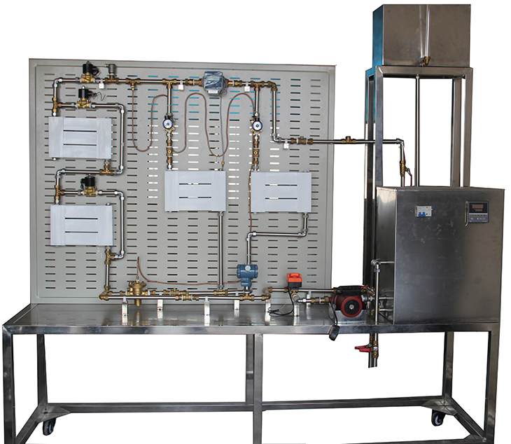 供熱系統管道安裝實(shí)訓裝置提供實(shí)訓平臺、熱源、散熱器、閥門(mén)、供熱管道及附件、板式換熱器、儀表等分類(lèi)器件;根據實(shí)訓要求選擇不同的器件,進(jìn)行室內系統以及室外管道的安裝,室內系統的安裝主要包括有單戶(hù)式自然循環(huán)熱水供暖系統安裝、雙管上供下回式系統安裝、垂直單管順流式系統安裝等。室外管道的安裝主要包括直埋供熱管道安裝、管溝和地上敷設管道安裝、法蘭和閥門(mén)的安裝等