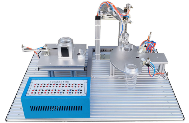 該任務(wù)由氣動(dòng)機械手、分揀機構、上料機構、安裝網(wǎng)孔板、電氣接口板、電磁閥組等組成,安裝網(wǎng)孔板由有1.2mm優(yōu)質(zhì)不銹鋼鋼板加工制作,機構件由鋁材機加氧化而成,機構全部為散件提供,按教學(xué)要求由學(xué)員自己動(dòng)手組裝、接線(xiàn)并通過(guò)接口板與外部連接調試。