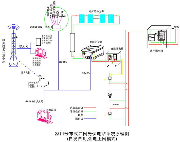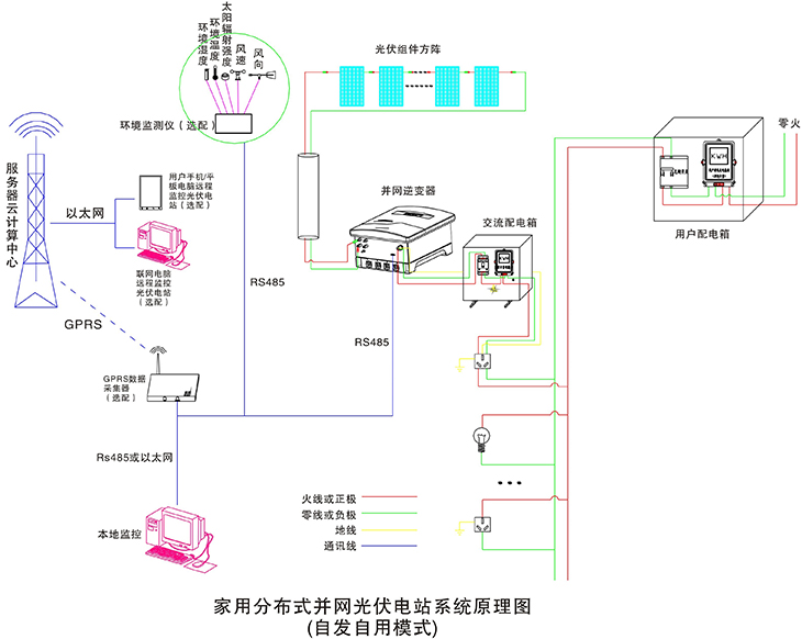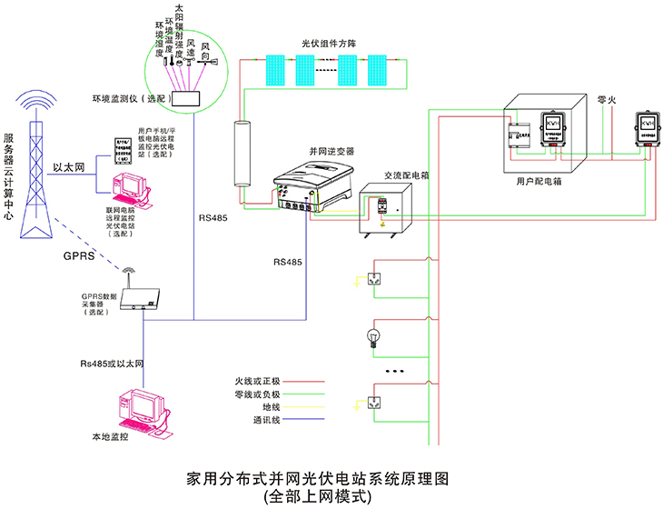 在晴朗的白天,裝在屋頂上的光伏組件發(fā)出的直流電經(jīng)過(guò)并網(wǎng)逆變器逆變成與電網(wǎng)同頻率同相位的單相交流電給負載進(jìn)行供電,在夜晚或陰雨天等太陽(yáng)光照不足的情況下,系統處于待機狀態(tài),負載用電全部來(lái)自電網(wǎng)。您可以通過(guò)系統監控軟件來(lái)實(shí)時(shí)查看系統的運行狀態(tài)和故障信息,或者是選配遠程通訊數據采集器,將系統工作數據通過(guò)GPRS或以太網(wǎng),傳輸到您的手機、平板電腦或任意一臺聯(lián)網(wǎng)的電腦,以便于您遠程實(shí)時(shí)掌控電站的信息。