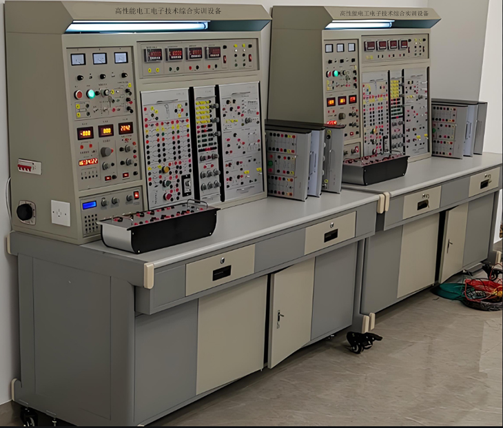 高性能電工電子技術(shù)綜合實(shí)訓設備、高性能電工技術(shù)實(shí)驗裝置、電工電子實(shí)驗裝置、電工電子實(shí)驗裝置、電氣控制線(xiàn)路連接電工試驗臺、電工電子及電力拖動(dòng)綜合應用創(chuàng )新實(shí)訓裝置、電工電子技術(shù)實(shí)訓室設備主要承擔機電一體化技術(shù)、電氣自動(dòng)化技術(shù)、工業(yè)過(guò)程自動(dòng)化技術(shù)和電力系統自動(dòng)化技術(shù)等電類(lèi)相關(guān)專(zhuān)業(yè)的《電氣控制線(xiàn)路的安裝與維修》、《電工基礎》、《電力電子技術(shù)》、《模擬電子技術(shù)》、《數字電子技術(shù)》等課程的實(shí)訓教學(xué)任務(wù)及綜合實(shí)訓項目,并為教師提供了自動(dòng)控制方向的科研開(kāi)發(fā)平臺。核心為電氣控制線(xiàn)路的安裝與檢修、數模電、電工基礎模塊等。配有綜合教學(xué)一體機,可實(shí)現理實(shí)一體化項目教學(xué)。通過(guò)電工技術(shù)實(shí)驗實(shí)訓,能夠鍛煉學(xué)生對電工元件的識別、檢測和整體電路的安裝、調試與檢修等各項技能,同時(shí)能提高學(xué)生電工技術(shù)的理論綜合能力。電工技術(shù)實(shí)訓室是啟發(fā)認識創(chuàng )新提高的實(shí)訓室?梢赃M(jìn)行照明控制電路的實(shí)訓、電力計量控制電路實(shí)訓、電力拖動(dòng)控制電路的實(shí)訓、電動(dòng)機啟動(dòng)控制電路實(shí)訓、電動(dòng)機正反轉控制和位置控制電路的實(shí)訓、電動(dòng)機順序控制和時(shí)序控制電路的實(shí)訓、電動(dòng)機拖動(dòng)控制系統安裝和調試的實(shí)訓、電力拖動(dòng)控制電路及電動(dòng)機制動(dòng)控制電路的實(shí)訓。為今后從事維修電工技術(shù)工作打下扎實(shí)基礎。