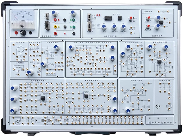模擬電子技術(shù)實(shí)驗箱由鋁木合金箱體、高性能線(xiàn)性電源、和實(shí)驗電路板組成。其中實(shí)驗電路采用固定功能模塊方式,電路原理和元器件符號清晰,實(shí)驗用元器件可以焊裝在線(xiàn)路板的反面,安全可靠,不易損壞,也可以裝在線(xiàn)路板的正面,元件直觀(guān)可見(jiàn),感性認識強,正面還有實(shí)驗電路原理圖,使學(xué)生在實(shí)驗時(shí)對原理一目了然。
