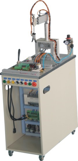 由機械手、橫臂、回轉臺、旋轉氣缸、開(kāi)關(guān)電源、可編程序控制器、按鈕、I/O接口板、通訊接口板、電氣網(wǎng)孔板、多種類(lèi)型電磁閥及氣缸組成,主要完成將工件從上站搬至下一站。