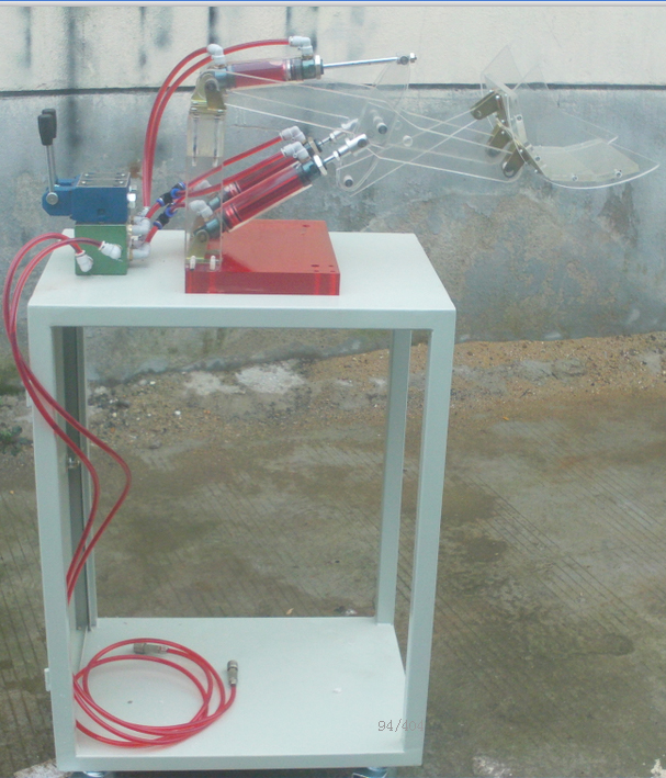 透明裝載機實(shí)訓臺主要由底柜,透明大臂,透明動(dòng)臂,透明裝斗,透明油缸,透明集成閥島,透明手動(dòng)換向閥,支架組成