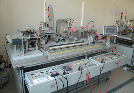 實(shí)訓裝置臺架為鋁合金導軌式,實(shí)訓考核裝置PLC模塊的I/O 端子、變頻器的接線(xiàn)端子、各常用模塊與PLC的連接端子,均與安全插座連接,使用帶安全插頭的導線(xiàn)進(jìn)行電路連接;各指令開(kāi)關(guān)、光電開(kāi)關(guān)、傳感器和指示元件的電路,則通過(guò)端子排進(jìn)行連接。插拔線(xiàn)連接電路與端子牌連接電路相結合,既保證學(xué)生基本技能的訓練、形成和鞏固,又保證電路連接的快速、安全和可靠。