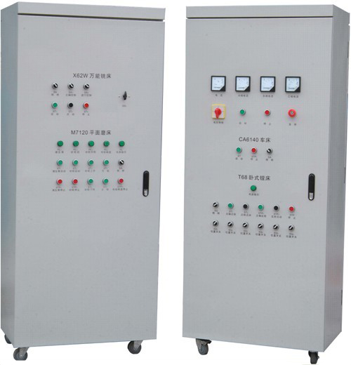 1.本裝置采用標準配電柜為主體柜,充分利用該柜雙面空間位置,設有一臺銑床、一臺車(chē)床、一臺鏜床、一臺磨床,該配電柜將四種機床電氣線(xiàn)路合為一體,各種機床占地面積小,外形美觀(guān);