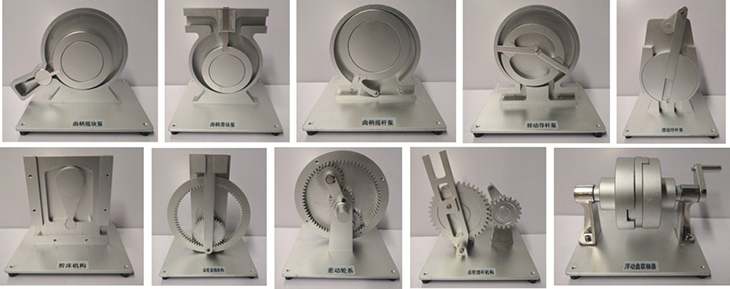 模型殼體、轉動(dòng)件均采用鋁合金精加工制作、表面打磨,進(jìn)行噴砂氧化處理;所有聯(lián)接件均采用標準化生產(chǎn),需要觀(guān)察內部機構運動(dòng)的模型表面裝飾有透明有機玻璃,銷(xiāo)軸連接,產(chǎn)品耐磨性好、轉動(dòng)靈活,拆裝方便,經(jīng)久耐用、美觀(guān)大方。