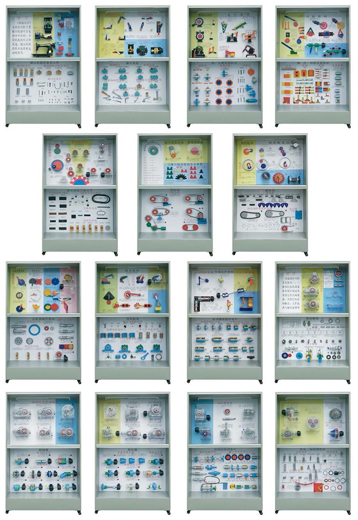 機械綜合式陳列柜該設備是根據大中專(zhuān)院校、職業(yè)學(xué)校的教學(xué)大綱設計的多功能機械綜合示教室是一套《機械原理》、《機械零件》、《減速器》共500余種模型,分三大類(lèi)合并成的機械電化教學(xué)設備。共15個(gè)柜,30個(gè)板面。該設備采用新型觸摸液晶屏電腦控制主控臺。Mp3解說(shuō),觸摸屏、遙控控制,聲控同步循環(huán)播放進(jìn)行演示;又根據教材,教學(xué)需要而任意選擇單獨運轉演示。本產(chǎn)品的特點(diǎn):使作方便,占地面積小,結構新穎實(shí)用,制作工藝更加美觀(guān),整套設備演示形象逼真,運行可靠,有效的提升了教學(xué)生動(dòng)性、趣味性及產(chǎn)品壽命。是一套現代化的機械課程示教室設備。