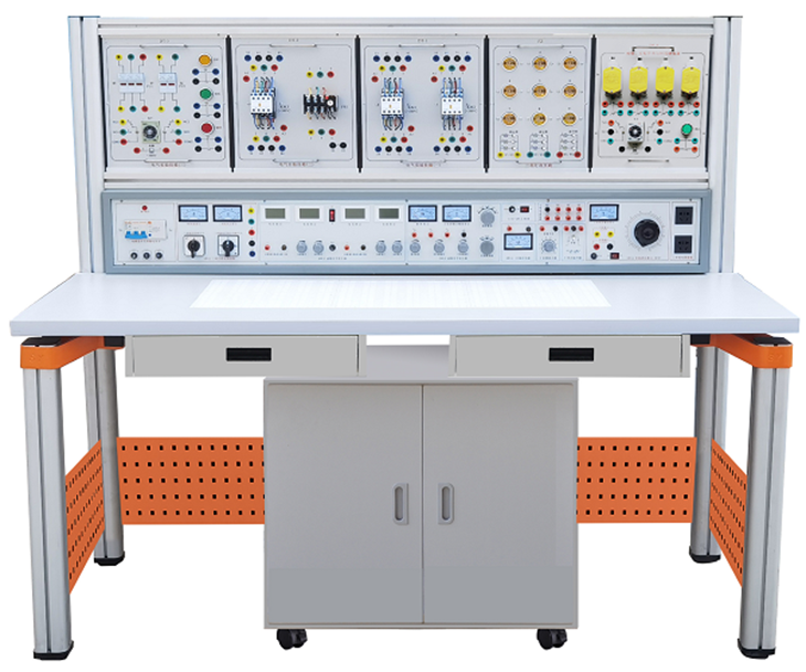 裝置由主機箱、實(shí)驗桌、移動(dòng)矮柜、電氣控制實(shí)驗掛箱、實(shí)驗掛箱支架、學(xué)生凳等組成。實(shí)驗桌可組合、可拆裝。支架與桌腳一體,鋁合金結構;電氣控制實(shí)驗掛箱及各實(shí)驗模塊可根據實(shí)驗需求自由組合實(shí)驗。