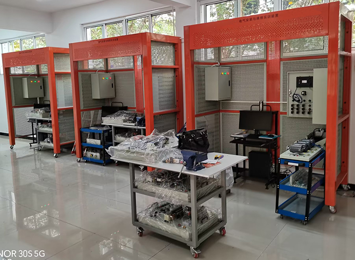 電氣安裝與維修實(shí)訓考核裝置,可進(jìn)行電工安裝。如橋架安裝、PVC管安裝、白熾燈座、日光燈、開(kāi)關(guān)、插座、配電箱、控制箱等,裝置還包含有交流異步電動(dòng)機、直流電動(dòng)機、步進(jìn)電機、伺服電機、溫度控制器、電偶、PLC、變頻器觸摸屏等控制與受控對象。該系統每個(gè)操作組配套一可移動(dòng)式工具車(chē)和元件柜,便于對元件的保管和安裝施工。從根本上解決了學(xué)校在普通墻面上進(jìn)行的安裝培訓的使用不方便、實(shí)訓范圍窄的問(wèn)題。
