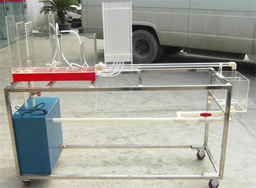 主要配置:儲水箱; 上水管;溢流管;整流柵;溢流板;溢流箱;畢托管;差壓計;閥門(mén) 測壓計;調節閥;回水箱;計量箱;回水管;移動(dòng)式不銹鋼實(shí)驗臺。