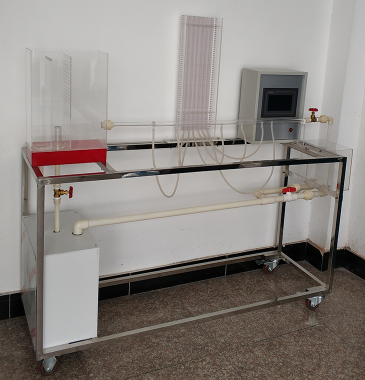 仿真演示軟件;能讓學(xué)生在電腦上更直觀(guān)地觀(guān)看模擬動(dòng)態(tài)實(shí)驗,比如可以做成動(dòng)畫(huà)軟件。儲水箱,三種不同管徑的實(shí)驗管段;取壓管;閥門(mén);測壓傳感器;調節閥;回水箱;流量數顯裝置;回水管;移動(dòng)不銹鋼實(shí)驗臺。