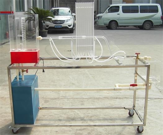 主要配置:移動(dòng)式不銹鋼實(shí)驗臺;有機玻璃整流穩壓水箱;高位突擴突縮粗、細管,閥門(mén);測壓板;實(shí)驗管道及控制閥門(mén);計量箱;水箱;防腐潛水泵等。