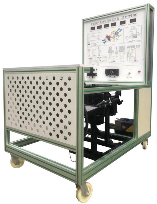點(diǎn)火開(kāi)關(guān)、電動(dòng)汽車(chē)空調壓縮機、膨脹閥總成、干燥器總成、鼓風(fēng)機總成、冷凝器、冷卻電子風(fēng)扇、電動(dòng)空調壓縮機控制器總成、空調蒸發(fā)箱總成、充電器與充電接口、充電插線(xiàn)、DC-DC轉換器、鋰電池組、空調操作面板、高低壓空調壓力表、采暖模塊總成、電源總開(kāi)關(guān)、急停開(kāi)關(guān)、直流接觸器、輔助蓄電池(12V45AH)、一體化全鋁合金型材搭建的移動(dòng)臺架(1500×1000×1700mm ,帶自鎖腳輪裝置,帶安裝檢測端子的原理面板948×898mm)、故障模擬與排除裝置、設備操作說(shuō)明書(shū)。
