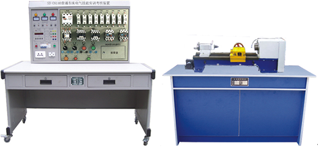 C6140普通車(chē)床電氣技能實(shí)訓考核裝置由電源控制部分、機床電氣控制部分、半仿真機床實(shí)物部分構成。電源控制部分包括實(shí)訓定時(shí)、定時(shí)報警、安全用電自動(dòng)控制等,機床電氣控制部分把整臺機床內部電器裝在正面面板上,能直觀(guān)地觀(guān)察機床工作時(shí)各電器的動(dòng)作狀況。故障點(diǎn)在面板上設有相應測試點(diǎn),供實(shí)訓考核者測試用。仿真機床部分能模擬機床各種運動(dòng)。通過(guò)本裝置的實(shí)訓能使學(xué)員掌握機床常見(jiàn)故障的現象、故障產(chǎn)生的大概部位,熟練掌握機床電路工作原理,其是維修電工初、中、高級技能鑒定的理想設備。