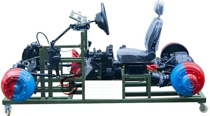 該設備采用 翻新 陜汽SX2300 底盤(pán)各系統為基礎,充分展示汽車(chē)底盤(pán)各系統的組成結構。包括汽車(chē)前后懸掛系、轉向系、傳動(dòng)系、手動(dòng)變速器及掛檔機構、制動(dòng)系等系統、安裝腳輪的可移動(dòng)式臺架等組成。