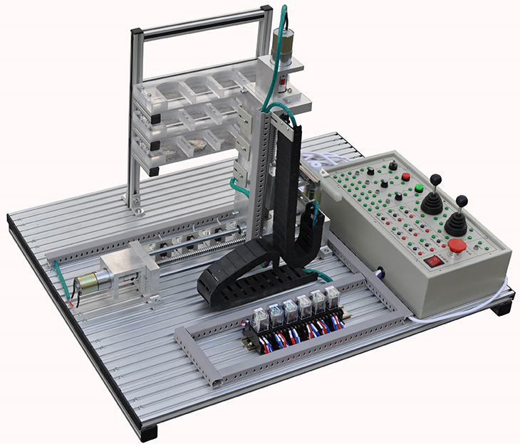 立體車(chē)庫實(shí)訓裝置為實(shí)際自動(dòng)車(chē)庫系統的微縮,使用可編程控制器控制,設有12個(gè)車(chē)位,在X、Y、Z軸三個(gè)方向上準確地驅動(dòng)直流電機進(jìn)行自動(dòng)儲存或取出儲存的成品,完善的執行機構可實(shí)現現代物流系統中自動(dòng)存儲系統全部動(dòng)作過(guò)程。PLC用戶(hù)自備。