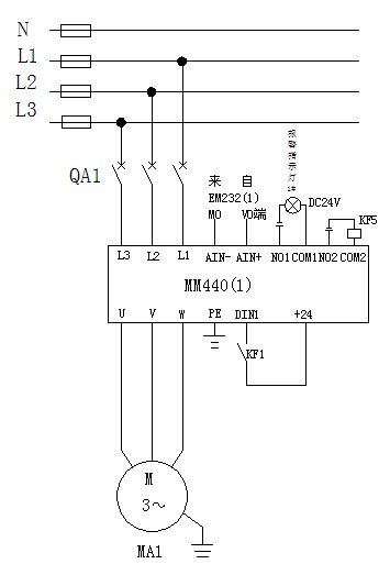 MM440變頻器的控制電路由CPU、模擬量輸入/輸出、數字輸入/輸出、操作面板等部分組成。該變頻器共有20多個(gè)控制端子,分為4類(lèi):輸入信號端子、頻率模擬設定輸入端子、監視信號輸出端子和通信端子。