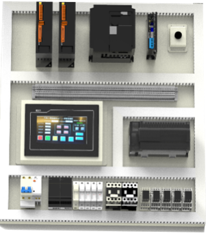 SB-815A-K01控制掛板 1. 功能:電氣控制掛板安裝于模型桌體上,采用可拆卸式斜面放置,掛板上下兩端安裝有鋁制拉手,方便掛板裝卸。 2. 掛板結構:掛板尺寸約L450mm*W600mm*H26mm,采用1.5mm冷軋鋼板折彎成型,表面靜電噴塑處理。 3. 小型中間繼電器:RXM4LB2BD DC24V 4. 交流接觸器:CJX2-0910 AC220V 5. 小型斷路器:IC65N 2P C10A 6. 熔斷器座:RT28N-32 7. 開(kāi)關(guān)電源:+24V/6.5A 8. 導軌插座:EA9X310 3孔10A 9. PLC:西門(mén)子CPU1214C PLC 晶體管,14路數字量輸入10路數字量輸出,本體集成一個(gè)PROFINET通訊口。 14.變頻器:西門(mén)子G120C,功率0.55KW,一個(gè)RS485通訊口,4個(gè)開(kāi)關(guān)量輸入,2路輸出。 15.保護功能:具有過(guò)流、過(guò)壓、欠壓等保護。 16.電氣控制:交流接觸器、熱繼電器、時(shí)間繼電器、空氣斷路器等組成。 |